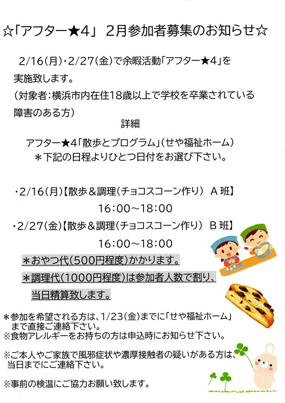 「アフター★4」2月参加募集のお知らせ [ 2026年01月07日 ]