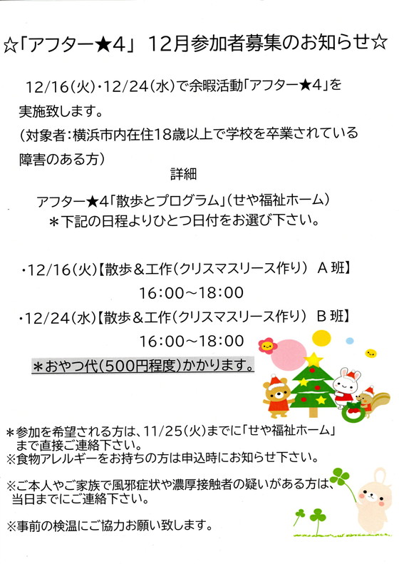 「アフター4」12月参加者募集のお知らせ [ 2025年11月06日 ]